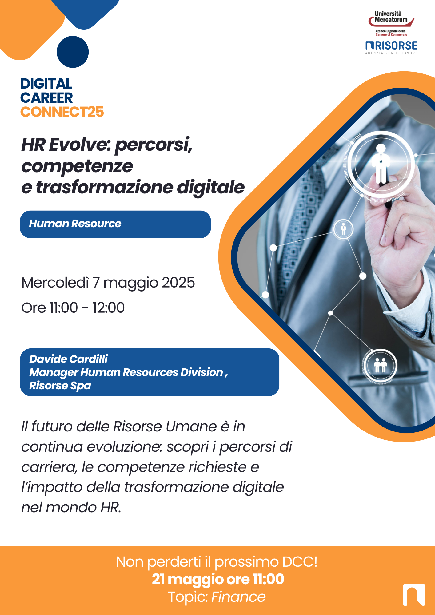 Connetti studio e impresa: il Career Service di Universitas Mercatorum ti accompagna nel tuo ingresso nel mondo del lavoro, con strumenti, percorsi e opportunità su misura per la tua crescita professionale.
