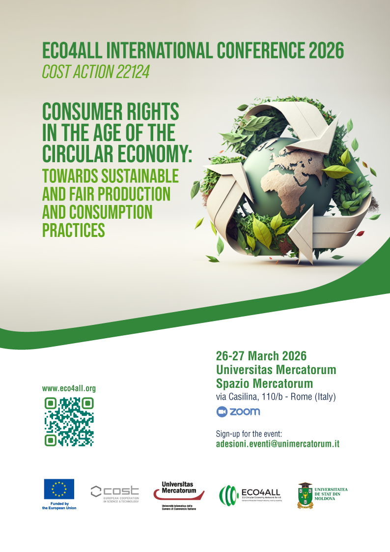 Nei giorni 26 e 27 marzo, presso Spazio Mercatorum, si terrà ECO4ALL International Conference 2026 | Cost Action 22124. Consumer Rights in the age of the Circular Economy: towards sustainable and fair production and consumption pratices.