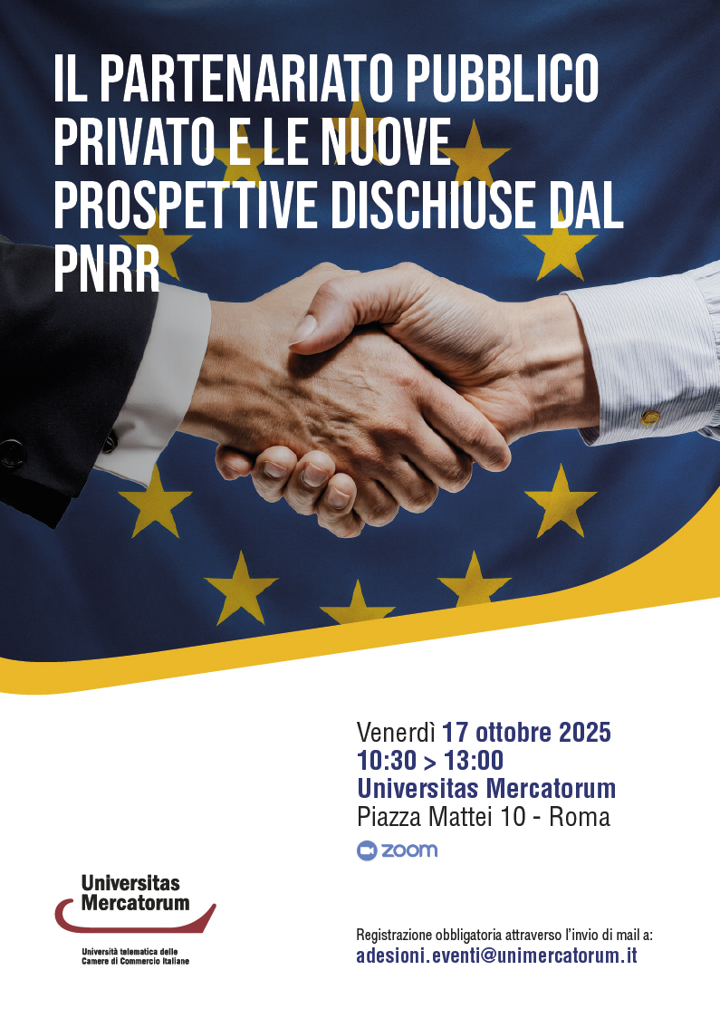 Venerdì 17 ottobre, dalle ore 10.30, presso Universitas Mercatorum, si terrà l'evento intitolato Il partenariato pubblico privato e le nuove prospettive dischiuse dal PNRR.