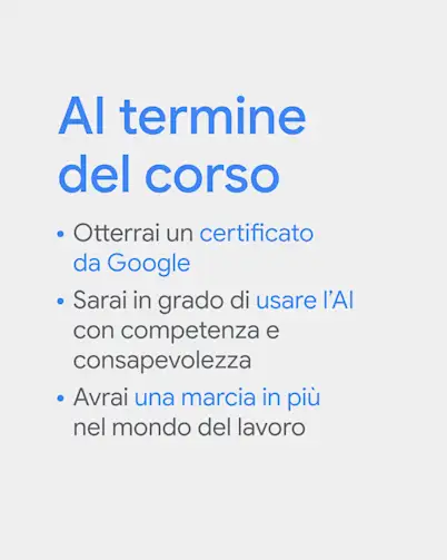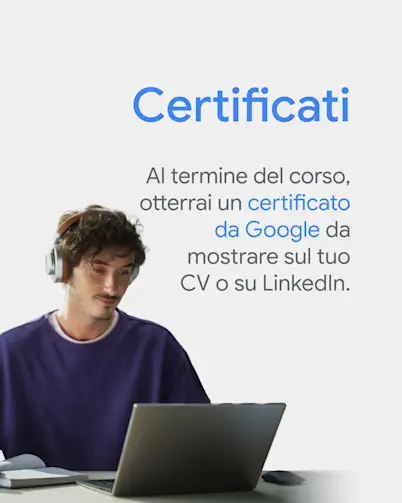 Al completamento di ciascun corso sarà rilasciato un certificato da Google, spendibile nel mercato del lavoro e potenzialmente riconoscibile in ambito universitario.