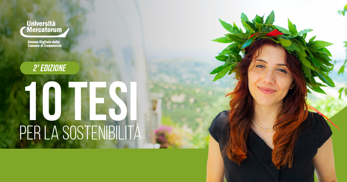 Universitas Mercatorum aderisce alla seconda edizione del Premio di Laurea “10 Tesi per la Sostenibilità”, l’iniziativa nazionale promossa da Fondazione Symbola, Luiss Guido Carli e Unioncamere, con il sostegno di Deloitte Climate & Sustainability e in collaborazione con AlmaLaurea, RUS e INSTM, con il patrocinio della CRUI e del MUR.